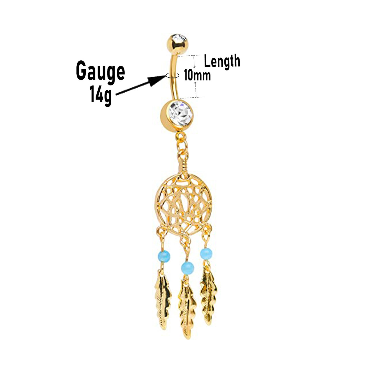 Dream Catcher Belly Ring - 14ga-3/8(10mm) - Gold I.P. Over 316L Surgical Steel