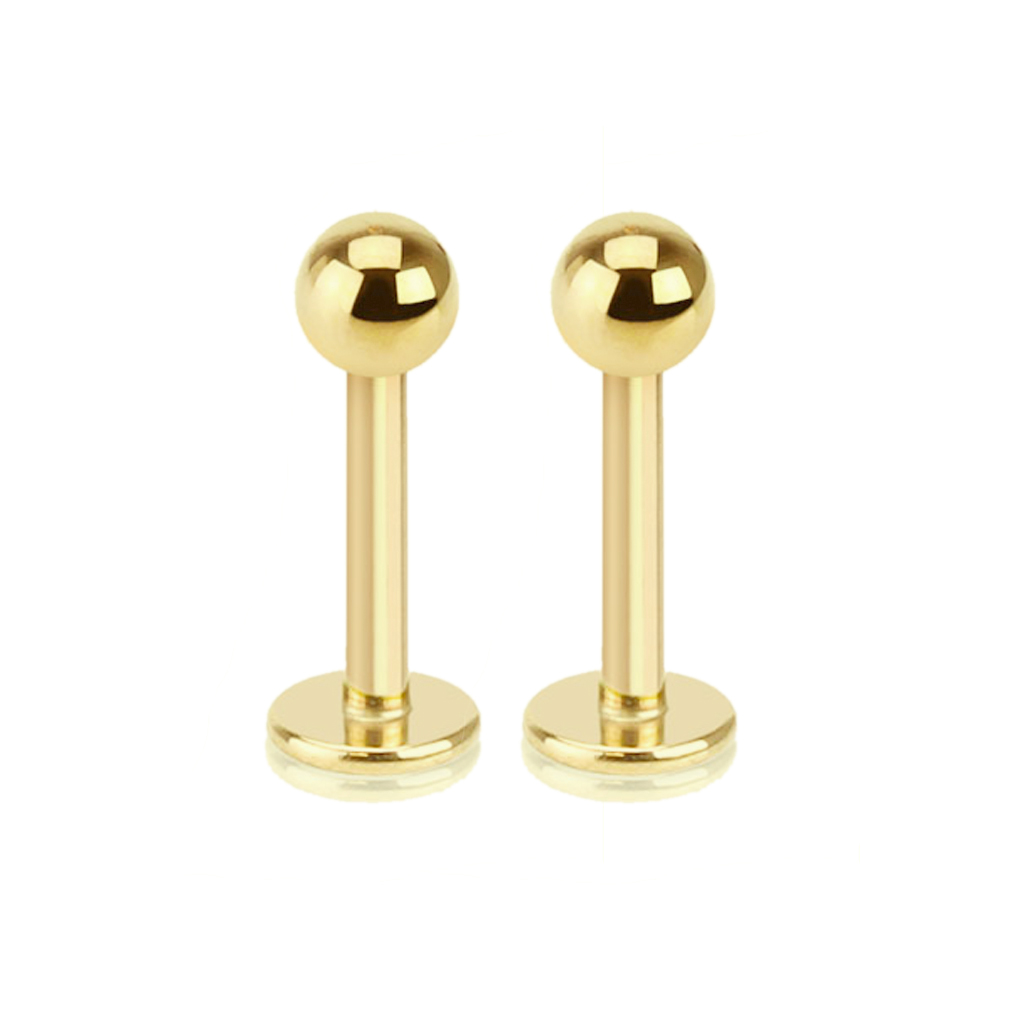 Sold as a pair. Perfect for labret/monroe piercings as well as cartilage, rook, tragus piercings. Gold I.P. coated for long-lasting color and durability. Made of 316L surgical steel - highest quality.