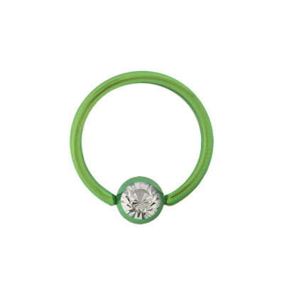 316L Surgical Steel PVD Green Captive Bead Ring Crystal CZ